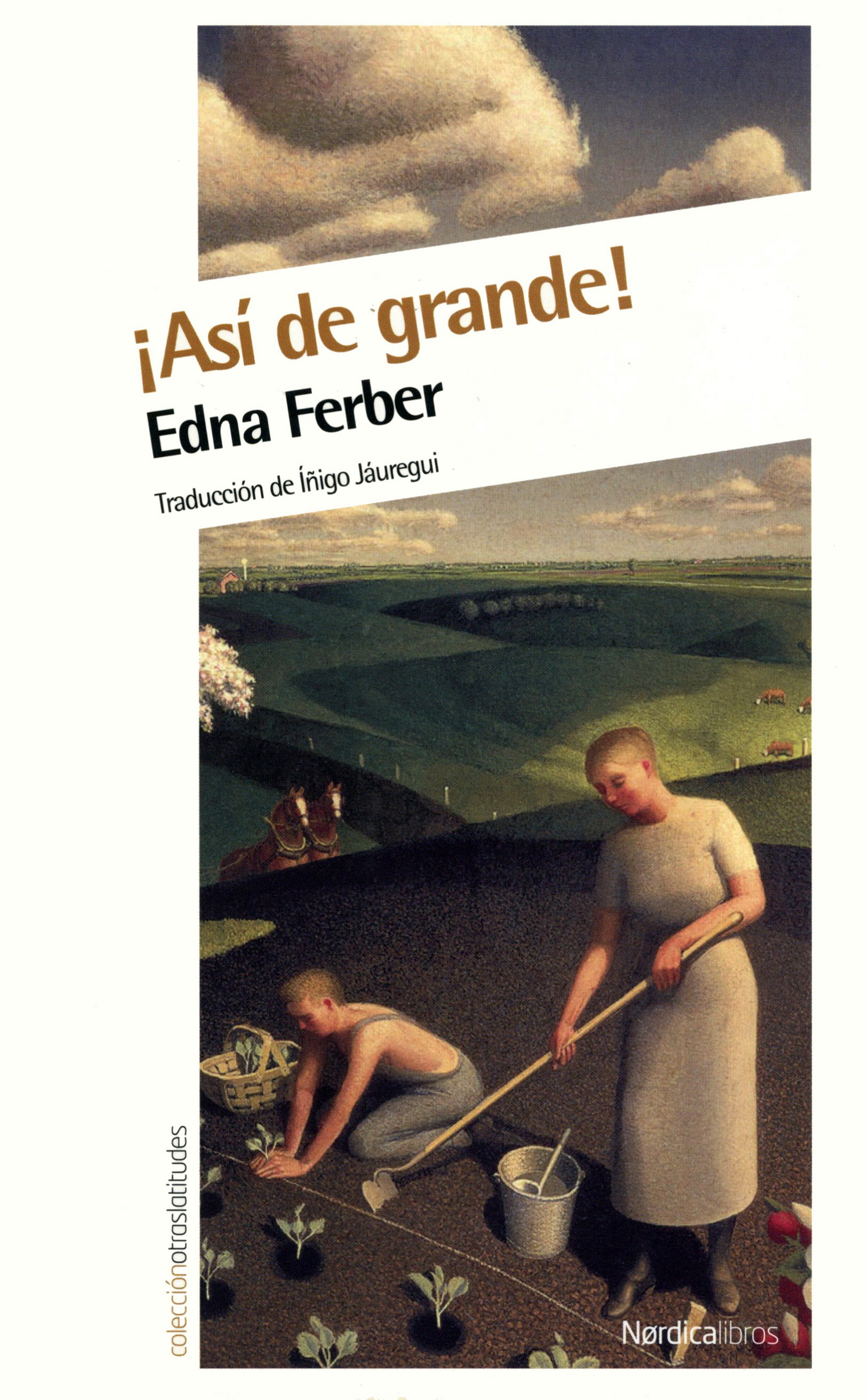 So Big, ¡Así de grande! , es el apodo cariñoso que Selina Peake DeJong le puso a su hijo, Dirk, al que, como toda madre orgullosa, preguntaba: «¿Cómo de grande es mi niño?». Esta mujer tenaz y luchadora es la verdadera protagonista de la novela. Siendo muy joven, tras la muerte de su padre, se instalará en una comunidad agrícola de origen holandés, cercana a Chicago, en la que el papel de las mujeres estaba alejado del trabajo del campo, al que sin embargo ella dedicará su vida al quedarse viuda. Selina sacrificará sus sueños para que su hijo pueda tener la vida que ella anhelaba, una vida plena dedicada a la creación. Selina DeJong encaja perfectamente en el perfil feminista de las obras de Edna Ferber, que se manifiesta en el deseo de afirmación y autonomía de los personajes femeninos que creó, y refleja los ideales que compartió la propia autora durante toda su vida. Esta maravillosa novela recibió el premio Pulitzer en 1925 y ha sido llevada al cine en varias ocasiones.
